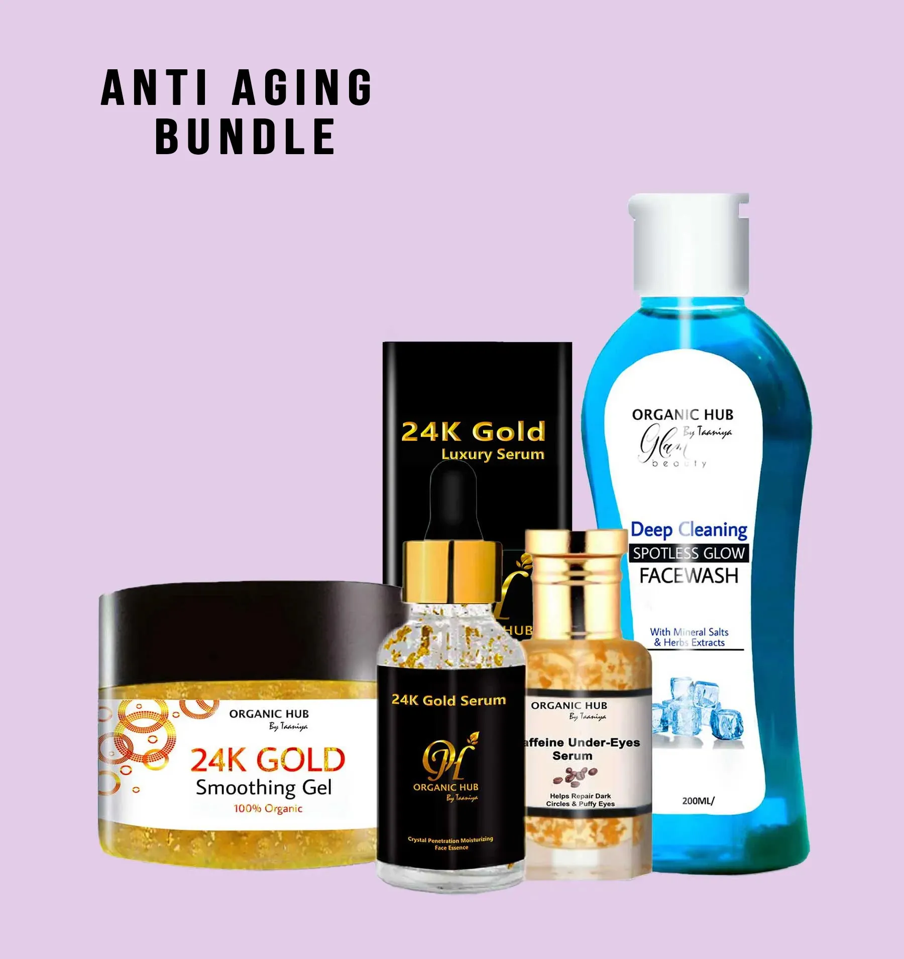 The Best Organic Anti Aging Bundle in Pakistan minimizes Aging Signs, Wrinkles and Finelines. Anti Aging Face Kit, Retinol Gel Moisturizer for Face, 24K Gold Serum for Face While Caffeine Under Eye Serum Formulated to Reduce Wrinkles, Dark Spots, Dark Circles & Uneven Skin Tone around eyes. A Best Beauty Gift Sets for Women and Especially for Mothers. Buy The Best Organic Anti-Aging Bundle in Pakistan at an Affordable Price.